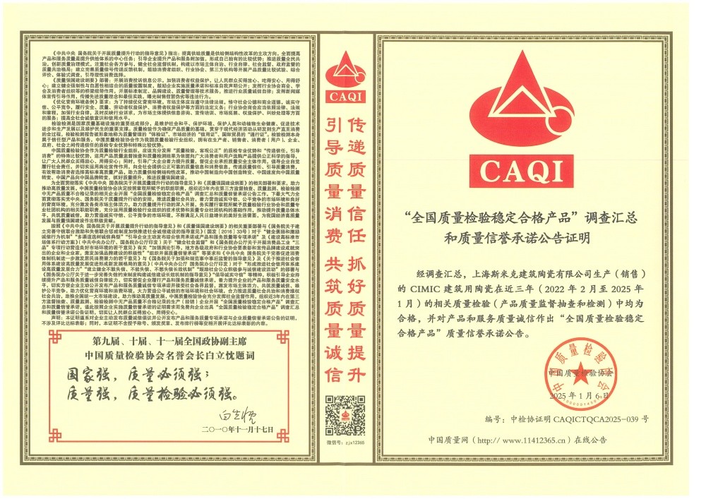 “全國質量檢驗穩定合格產品”調查匯總和質量信譽承諾公告證明