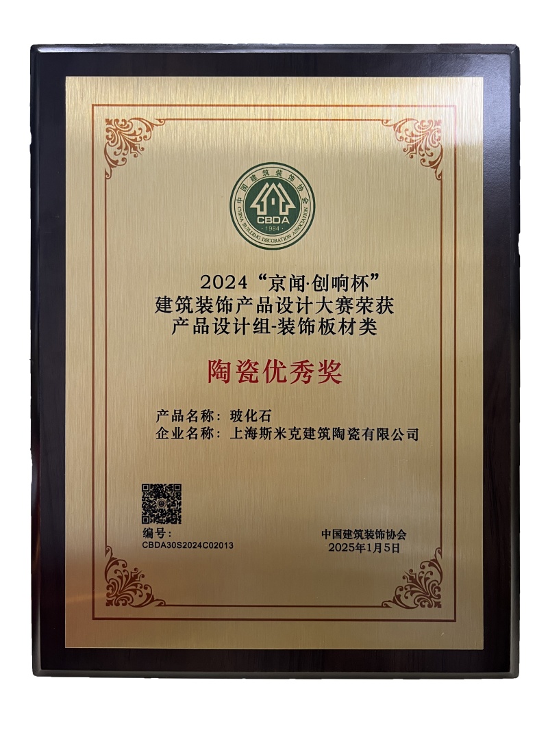 “京聞·創響杯”建築裝飾產品設計大賽榮獲產品設計組裝飾板材類-陶瓷優秀獎